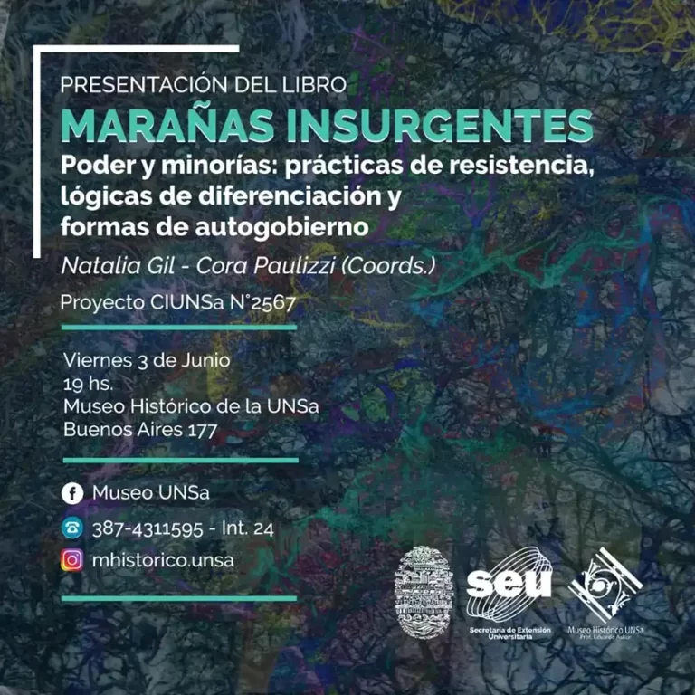El libro es resultado del conjunto de lecturas, debates y acciones que se desplegaron al interior del Proyecto de Investigación N°2567 del CIUNSa “Poder y minorías: prácticas de resistencia, lógicas de diferenciación y formas de autogobierno” (2019-2021). El trabajo se desarrolló en torno a dos ejes. El primero de ellos, estuvo vinculado a la profundización de algunos conceptos centrales de la Filosofía Política contemporánea haciendo pie en la noción de minoría o devenir minoritario, en vistas a establecer un horizonte teórico común, que nos permitió enmarañarnos como colectiva en la diferencia. El segundo eje, se concentró en establecer un espacio de discusión colectiva sobre las prácticas investigativas y territoriales desarrolladas en torno a grupos minoritarios y sus prácticas de resistencia y autogobierno. En términos metodológicos nos orientó la propuesta genealógica foucaultiana y las herramientas previstas por la etnografía colaborativa. En este proceso abordamos, territorialmente, los siguientes sectores: minorías sexuales, minorías étnicas, trabajadores desocupados y organizaciones barriales, comunales y urbanas.